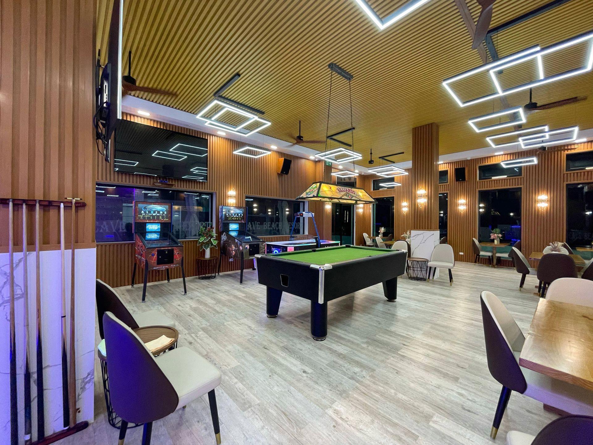 Experience the ultimate gaming paradise with our top-notch hardware tailored to meet all your gaming desires. Make your mark with a high score on our pinball machines, or rally your friends for an epic air hockey tournament. Challenge the bartender to a game of billiards for a chance to win a refreshing beer, or simply relax in the sun with a deck of cards. The choice is yours, and the fun is endless!