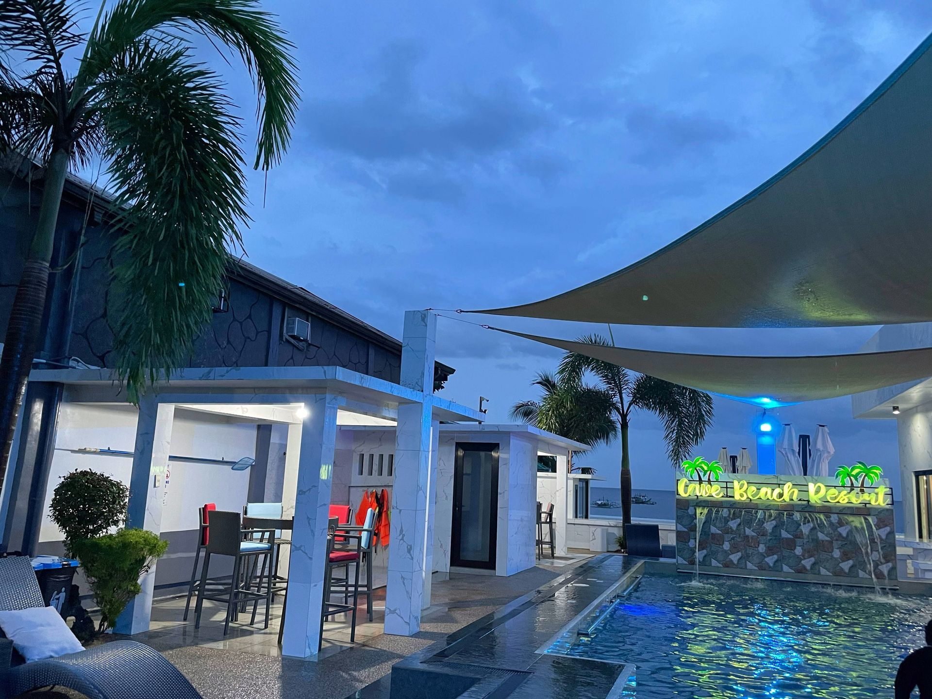 Spend your afternoons cooling off under the sails / umbrella on a cozy sun lounger or high table & chairs that are under cover.