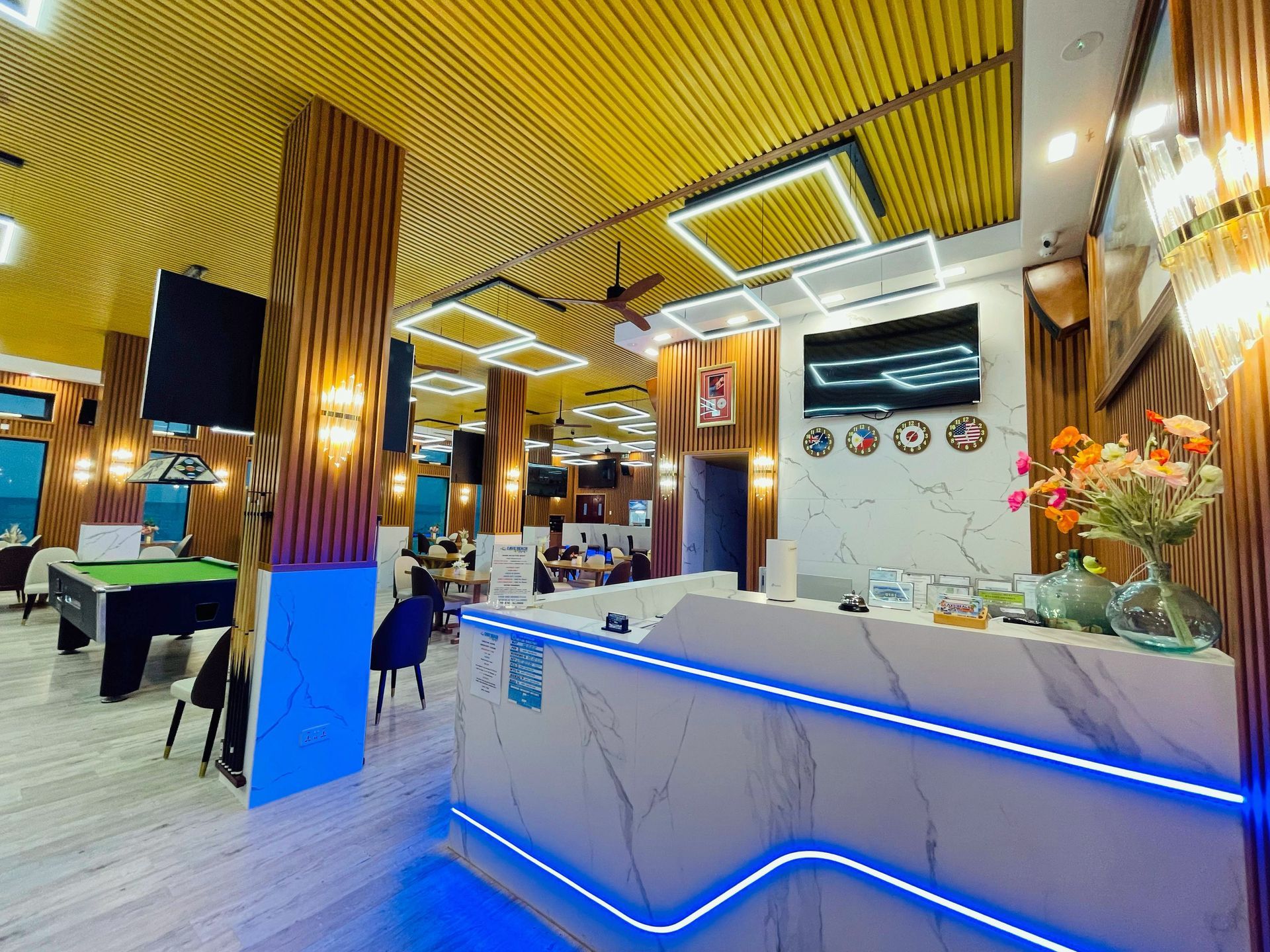 If you’re a shark, or a novice, you’ll enjoy the single piece slate billiards table suitable for all patrons.