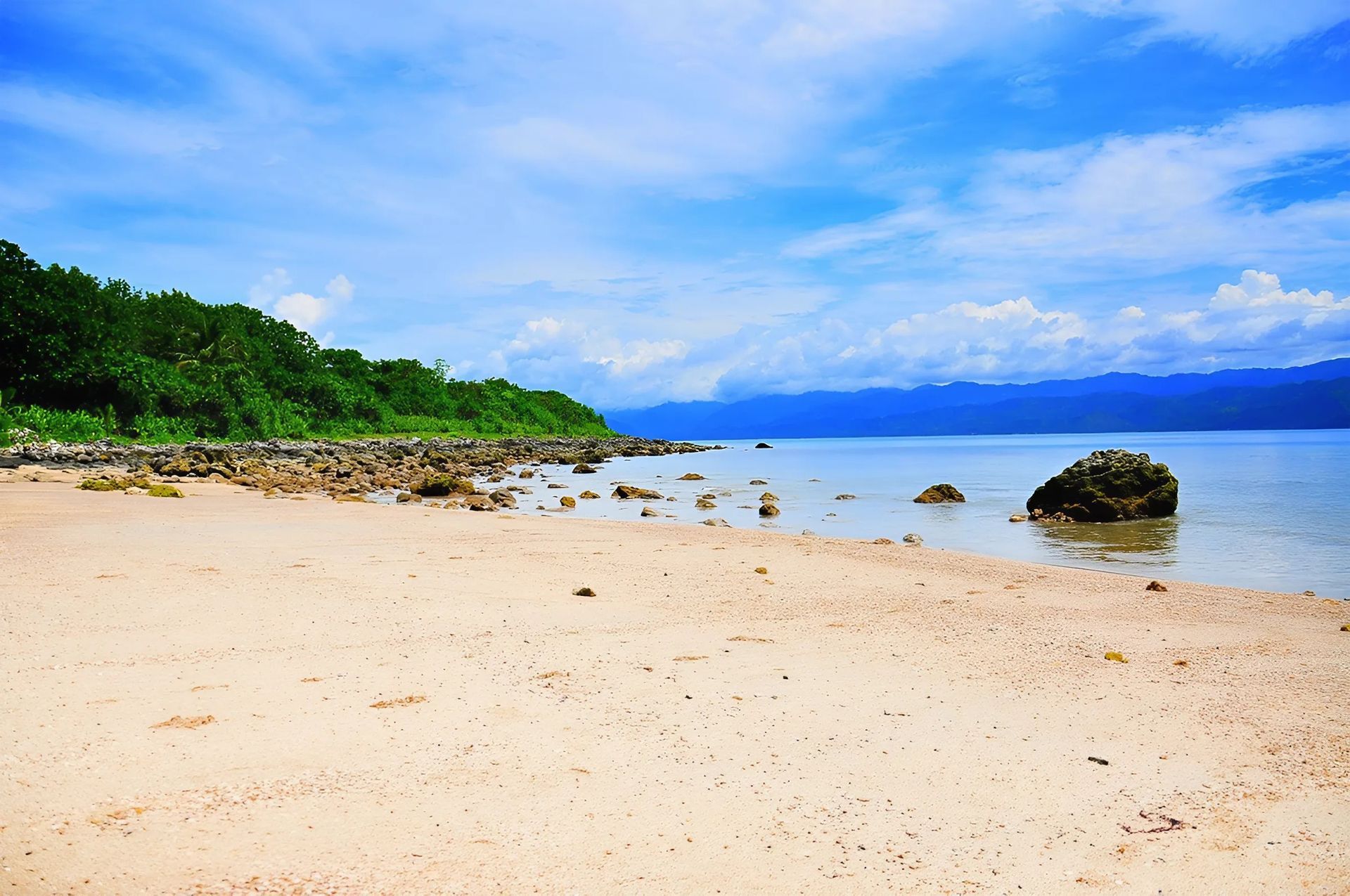 50 meters away is a rocky beach front, but it's sandy after the water's edge and always warm.
